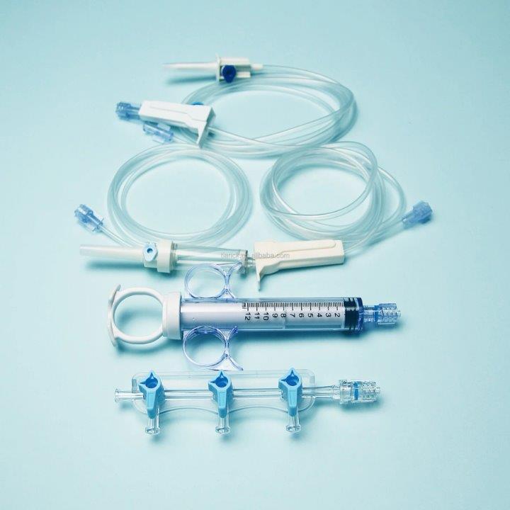 Manifold set is used for infusion of medicine or contrast medium to patients in cardiovascular intervention operation.