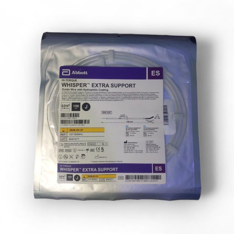 The HI-TORQUE WHISPER guide wire maneuvers easily, even in complex anatomy, with a soft tip.